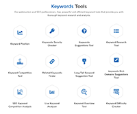 Analytics   Crawling/Indexing   Keyword Research   Link Tools   Local SEO   Mobile SEO   Multi-tool   On-page SEO   Research   Site Speed   Wordpress