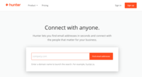 Hunter is a popular email search tool, and definitely the most popular free email finder. Use it to find the email address associated with any company or individual, and verify any email address you already have. 50 free queries/month before paid plans kick in.