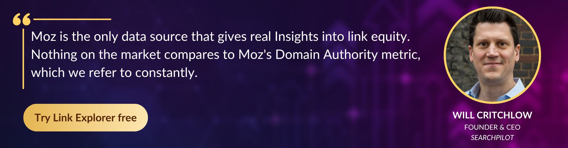 A lot of the methods you'd use to build links will also indirectly build your brand. In fact, you can view link building as a great way to increase awareness of your brand, the topics on which you're an authority, and the products or services you offer. We know that brands matter online and in the real world, but it can be a challenge to untangle the relationship between the value of a brand and search engine results. Google defines “quality backlink” based on a site’s content, the content creator’s expertise, experience, authority, and trustworthiness, and the company or people behind it. Fortunately, you can measure the strength of your brand with the Moz metric Brand Authority™. This metric will provide you with insight into the authority of your brand, your competitive landscape, and potential growth opportunities.